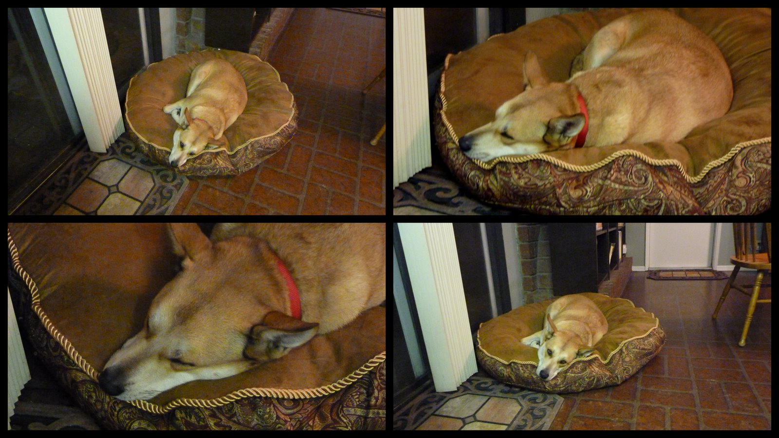 It only took a few days but now Chick is very happy to come in out of the rain and cold and curl up on her new bed. For the first few days, she would come in the door, sit by the bed, and await permission to get on the bed. She is a bit more forthright about it now and more readily claims it officially her napping place. During the summer, she would sleep for hours in the shade. I thought that giving her some inside time would perk her up a bit. Now, given the chance, she will sleep hours on her bed.